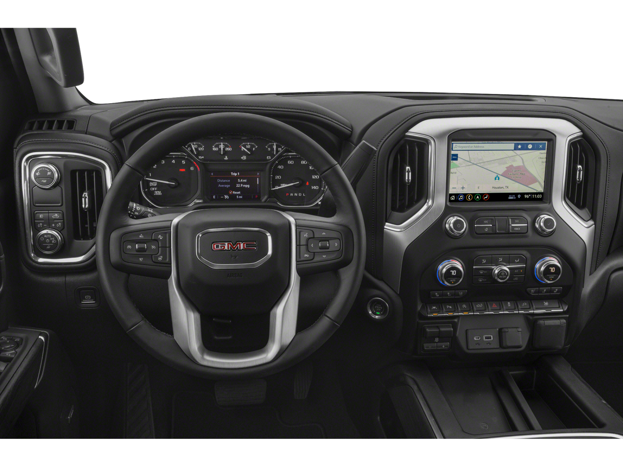 SLT Convenience Package: Ventilated Driver and Front Passenger Seats; Heated 2nd Row Outboard Seats; Power Sliding Rear Window with Rear Defogger; 2 USB Ports (1st Row); Floor Mounted Console; Front Bucket Seats; 2 USB Ports; Universal Home Remote. Driver Alert Package I: Ultrasonic Front and Rear Park Assist; Rear Cross Traffic Alert; Perimeter Lighting; Lane Change Alert with Side Blind Zone Alert. Driver Alert Package II: Forward Collision Alert; Lane Keep Assist with Lane Departure Warning; Front Pedestrian Braking; Following Distance Indicator; Low Speed Forward Automatic Braking; Safety Alert Seat; IntelliBeam Automatic High Beam On/off. Texas Edition SLT Premium Plus Package: 20" X 9" Polished Aluminum Wheels; Trailer Tire Pressure Monitor System; Chrome Assist Steps; Texas Edition Badging; Spray-On Pickup Bed Liner with GMC Logo. Preferred Equipment Group 4SA: LED Cargo Area Lighting; Hitch Guidance; Remote Vehicle Starter System; Electric Rear-Window Defogger; In-Vehicle Trailering App; 5.3L EcoTec3 V8 Engine; Theft Deterrent System (unauthorized Entry); Chrome